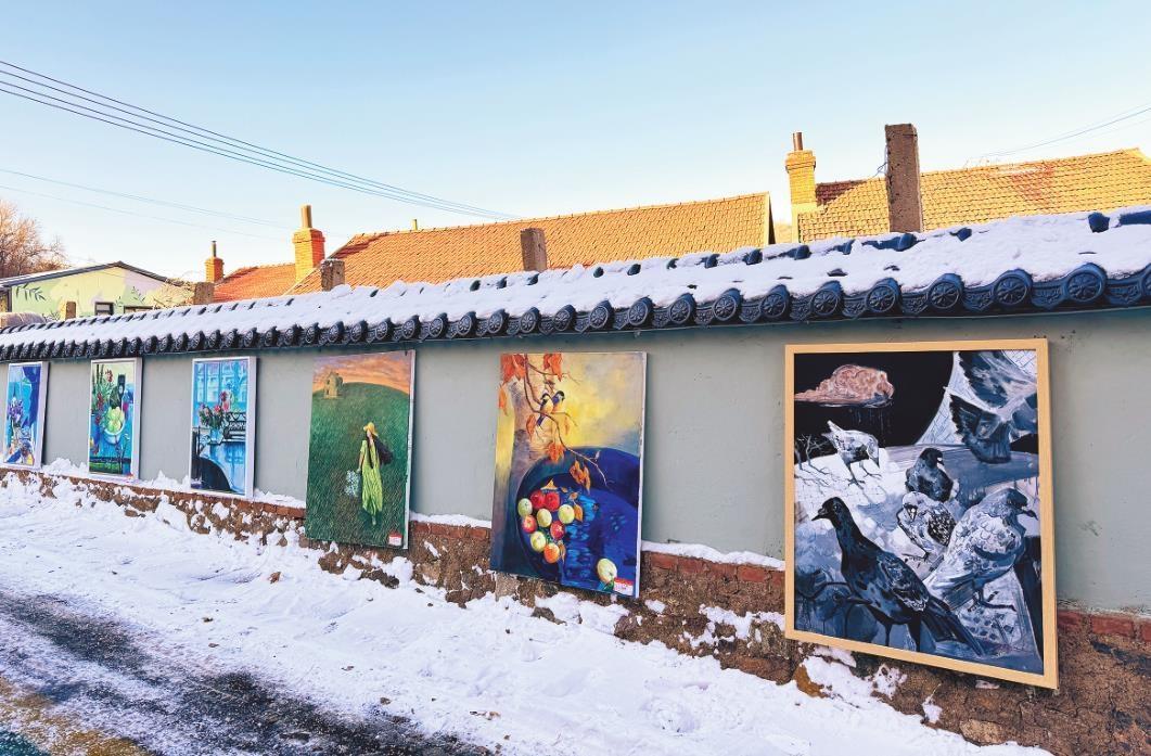 早春時(shí)節(jié),記者走進(jìn)色彩斑斕的齊家溝。此時(shí),地上的雪還沒(méi)完全融化。院墻上的色彩,大多出自畫家叢丹和高原麗夫婦之手。2000年,夫妻二人來(lái)到齊家溝落成了“山居畫室”,從此便告別都市生活,常居在這個(gè)寧?kù)o、充滿野趣的小村落靜心創(chuàng)作。此后,省內(nèi)外陸續(xù)有十余名知名畫家來(lái)此居住,漸漸地,齊家溝成了遠(yuǎn)近聞名的“畫家村”。
