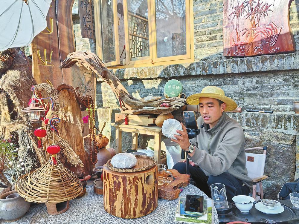 大乖來自陜西西安,是旅游愛好者。2022年,他通過網友介紹來到白云村,被這里“遠上寒山石徑斜,白云生處有人家”的詩意景致吸引,便決定旅居于此?!斑@里不僅風景如畫,還有茶葉、核桃、蜂蜜等土特產。我是主播,既然住下來,就想幫村民通過直播增收。”大乖的想法得到村“兩委”的支持。他與團隊一起修繕村內的“禪茶小院”,用于短視頻拍攝,又把老電站舊址改造成簡易直播間,讓古樸的村莊刮起一場“電商風暴”。