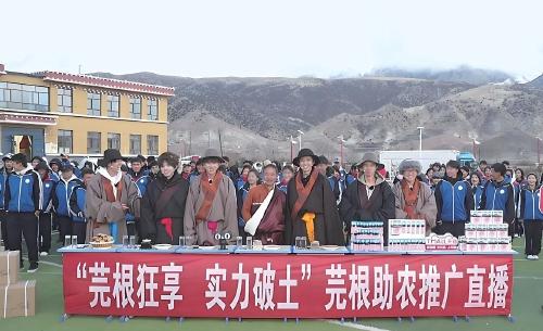 種地少年在青海省囊謙縣開展助農直播,芫根上架后迅速售罄。資料圖