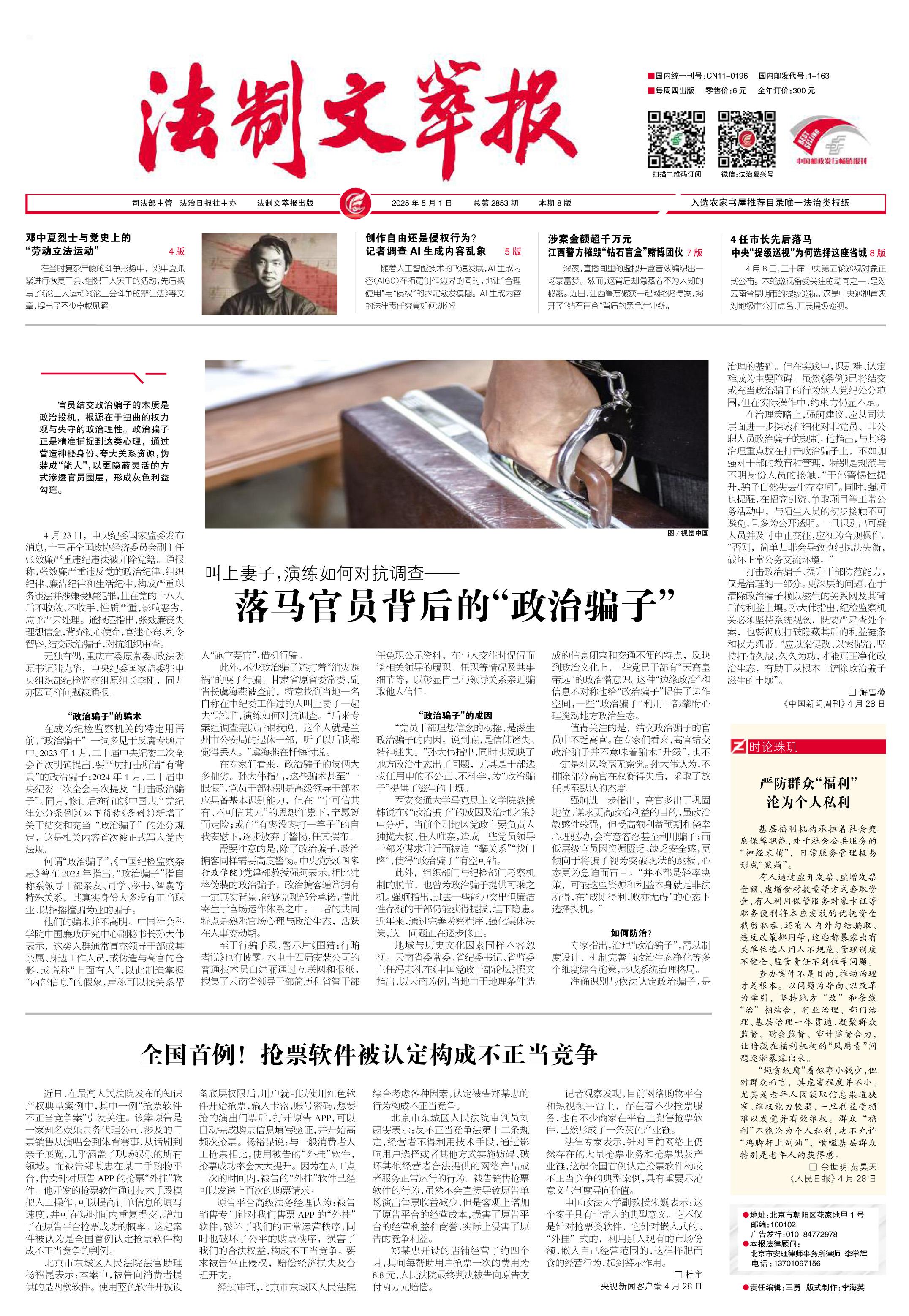 2025年5月1日《法制文萃報》總第2853期1版