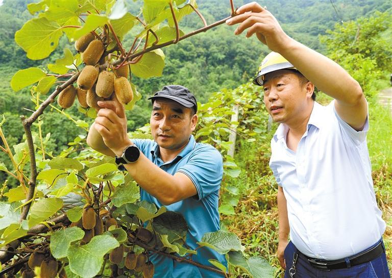 嵐皋縣高級(jí)農(nóng)藝師謝利華(左)在指導(dǎo)村民進(jìn)行獼猴桃管護(hù)(資料照片)。受訪者供圖