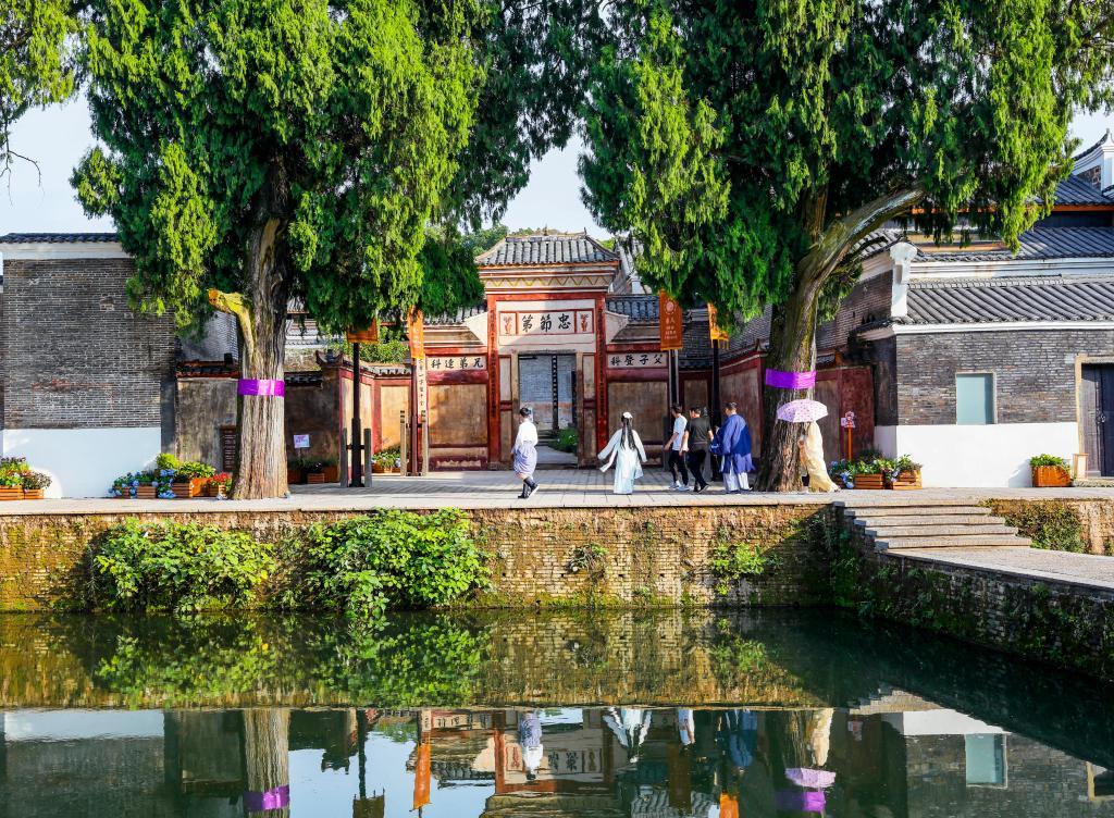 吉安古稱廬陵,釣源古村因歷史上交通便利、物阜民豐,鼎盛時(shí)期被稱為廬陵“小南京”。從高處俯瞰,古村規(guī)劃根據(jù)地勢高低順勢而為,以八卦布局,疏密有致、移步換景。村內(nèi)有150棟明清贛派建筑,道路整潔、流水清澈,青磚黛瓦被2.6萬余棵古樟樹環(huán)繞。