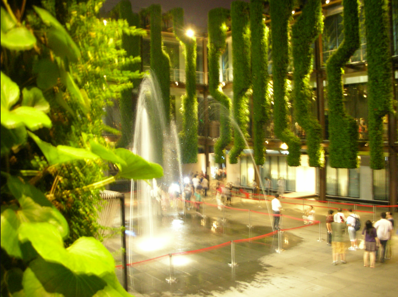 法國(guó)館遠(yuǎn)觀像是罩上了慈禧太后的網(wǎng)狀珍珠披肩。大堂呈垂直園林設(shè)計(jì),生機(jī)盎然。向上可見(jiàn)凹窗,廚師在內(nèi)操持,同步影像幽默感性。驀然回首,不諧卻在燈火闌珊處。一墻優(yōu)雅的對(duì)過(guò),豎屏赫然閃現(xiàn)只有中文標(biāo)識(shí)的紅字警示:“嚴(yán)禁在場(chǎng)內(nèi)吃東西 坐下和隨地大小便”。字幕滾動(dòng)播放,數(shù)步一現(xiàn),著實(shí)煞風(fēng)景。