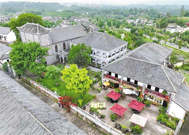 5月7日,九龍坡區(qū)銅罐驛鎮(zhèn)英雄灣村,修繕保護(hù)后的文物古跡里開(kāi)設(shè)起了咖啡店。記者 張錦輝 攝