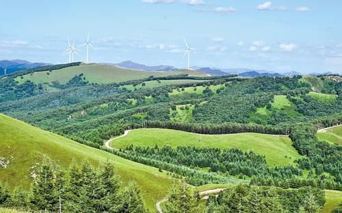 5月24日拍攝的豐寧滿(mǎn)族自治縣的森林和風(fēng)電場(chǎng)。記者 陳寶云 攝