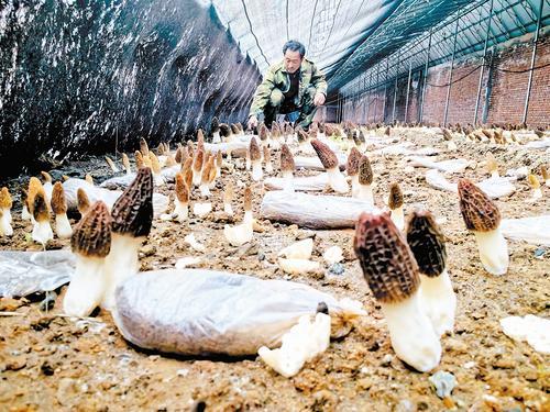4月16日,豐寧滿(mǎn)族自治縣湯河鄉(xiāng)料坡道村村民正在采收羊肚菌。記者 陳寶云 攝