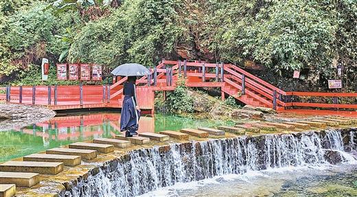 景區(qū)內(nèi)一條貫穿整個(gè)景區(qū)的紅色棧道格外引人注目。水錦順莊景區(qū)總監(jiān)助理韋炳佳介紹:“特意架高的棧道是為了避開(kāi)植被使其不被破壞,采用環(huán)保木材建設(shè),雖增加成本卻最大限度保護(hù)生態(tài)。”