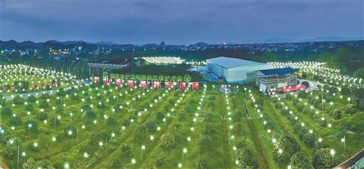 靈山縣荔枝品種示范園開(kāi)啟“光驅(qū)避”法綠色防控荔枝蛀蒂蟲(chóng)LED燈。朱香山 攝