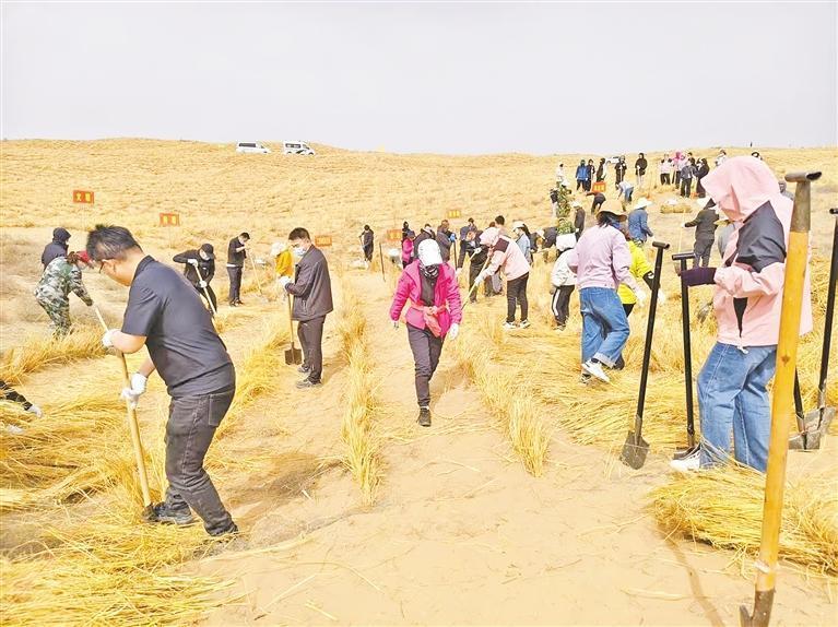 協(xié)同治理的突破,激活了多元力量的參與。平羅縣依托林長制搭建的協(xié)同平臺,將各級林長責(zé)任區(qū)與治沙任務(wù)精準(zhǔn)對接,通過建立黨建帶林建工作機制,引進社會資本參與后期養(yǎng)護管理?!?月25日,金融系統(tǒng)的研學(xué)團隊來這和我們一起扎草方格、種樹苗,大家干得熱火朝天!此外,青年志愿者隊伍也絡(luò)繹不絕……”王建保說,“林長制就像一根‘指揮棒’,將各方力量擰成一股繩,讓治沙從‘單打獨斗’升級為全社會協(xié)同作戰(zhàn)?!?/p>