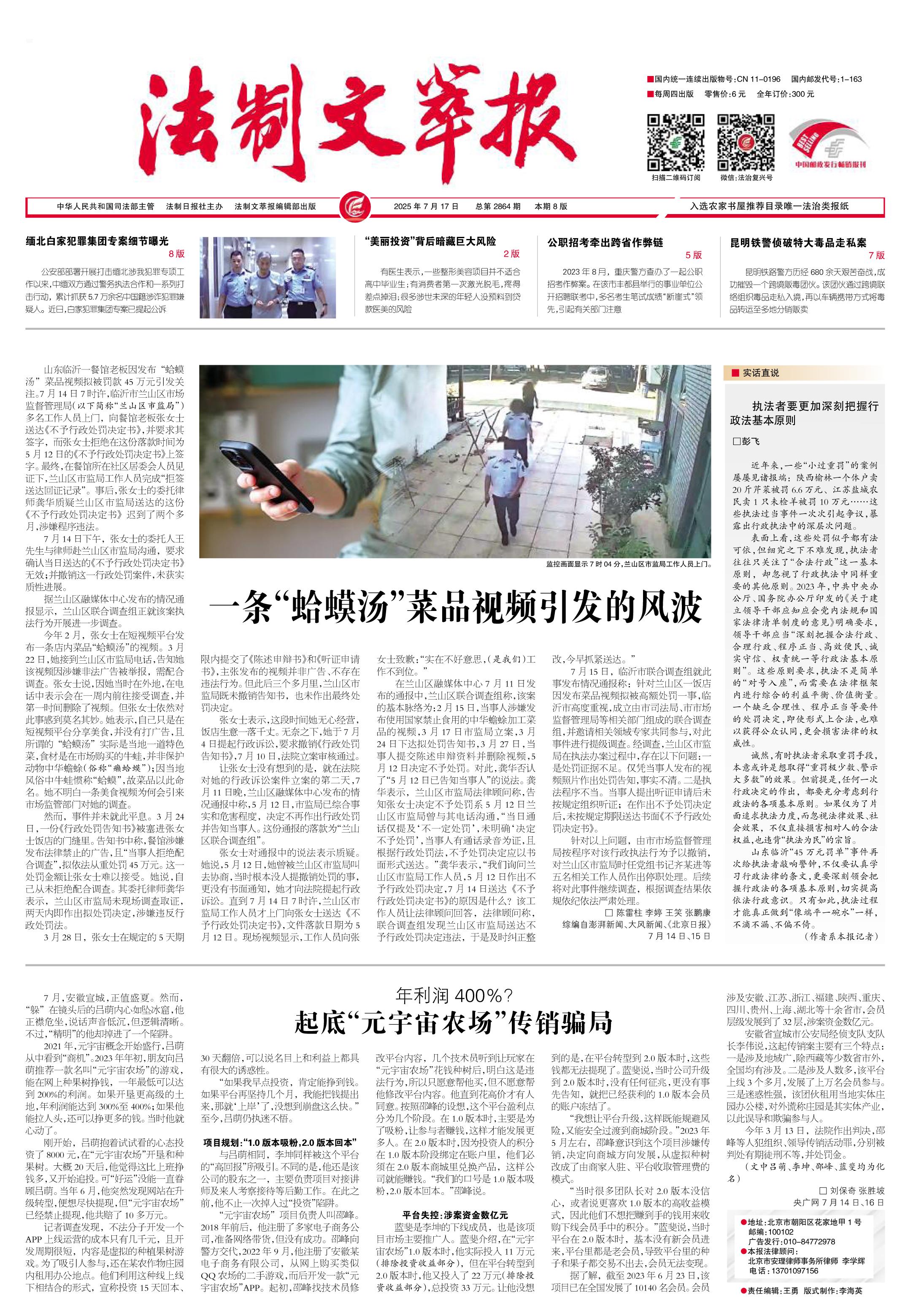2025年7月17日《法制文萃報(bào)》總第2864期1版