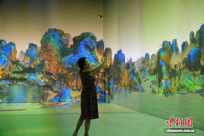 2025年7月,游客在中國歷代繪畫大系典藏館體驗“光影丹青”項目。曹丹 攝