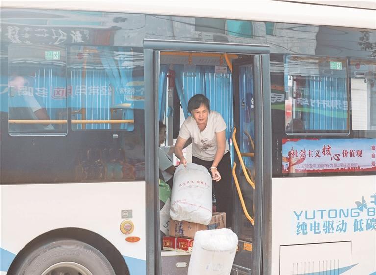 下午3點(diǎn)半,一輛往返于玉屏城區(qū)與新店鎮(zhèn)丙溪村的公交車輛緩緩駛?cè)敕峙渲行?。駕駛員熟練地將大小不一的快遞包裹清點(diǎn)裝車。很快,這些包裹便與乘客一同,踏上了“乘公交下鄉(xiāng)”的行程。