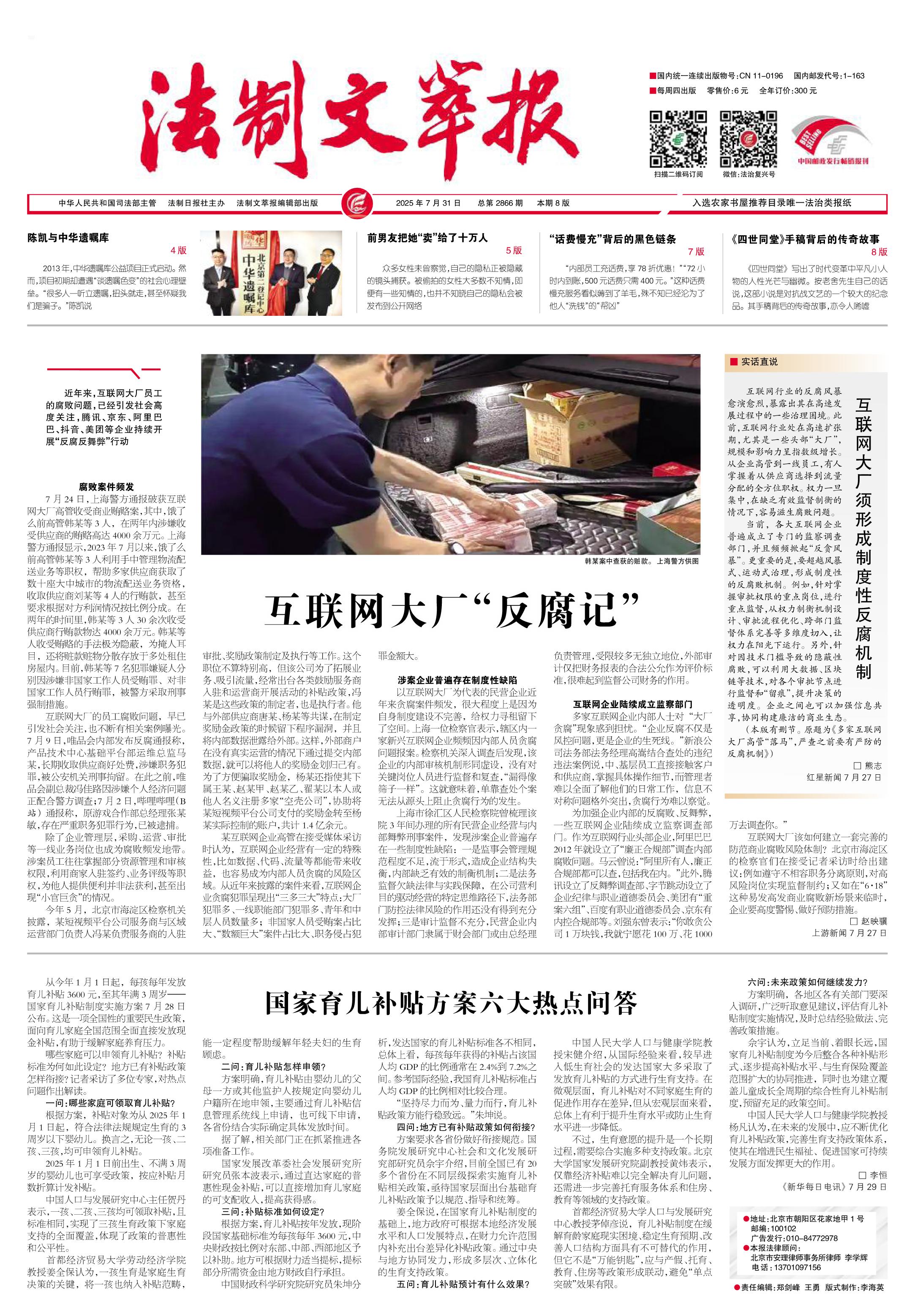 2025年7月31日《法制文萃報(bào)》總第2866期1版