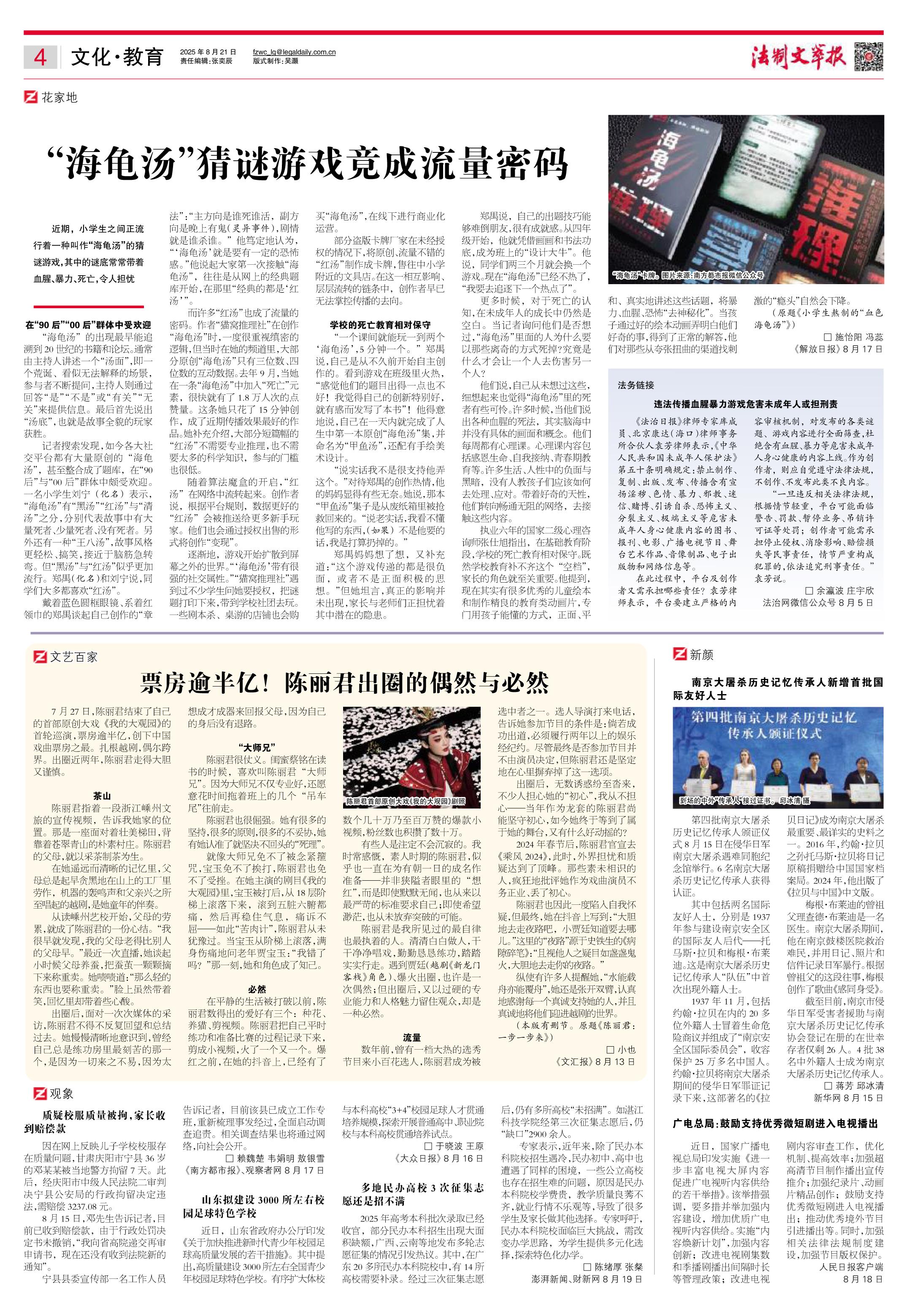 2025年8月21日《法制文萃報》總第2869期4版