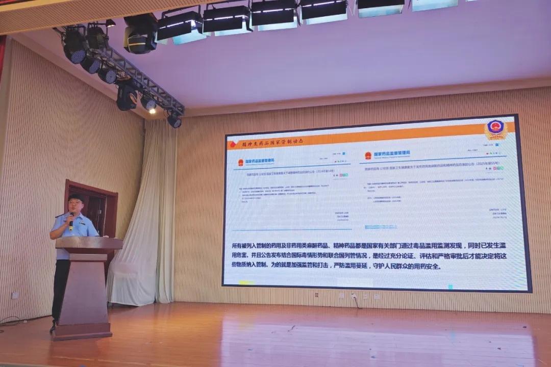 活動中,葫蘆島市市場監(jiān)督管理局楊家杖子分局工作人員王啟浩通過PPT演示、發(fā)放宣傳冊等形式,用通俗易懂的語言對麻醉藥品和精神藥品進(jìn)行了詳細(xì)介紹,著重強(qiáng)調(diào)了過量使用麻精類藥品會對身體和心理產(chǎn)生危害,輕則使人成癮、失控,誘發(fā)焦慮抑郁,重則導(dǎo)致暴力行為甚至死亡,非醫(yī)療目的的濫用麻精藥品即是吸毒違法行為,告誡同學(xué)們千萬不要越過法律紅線。