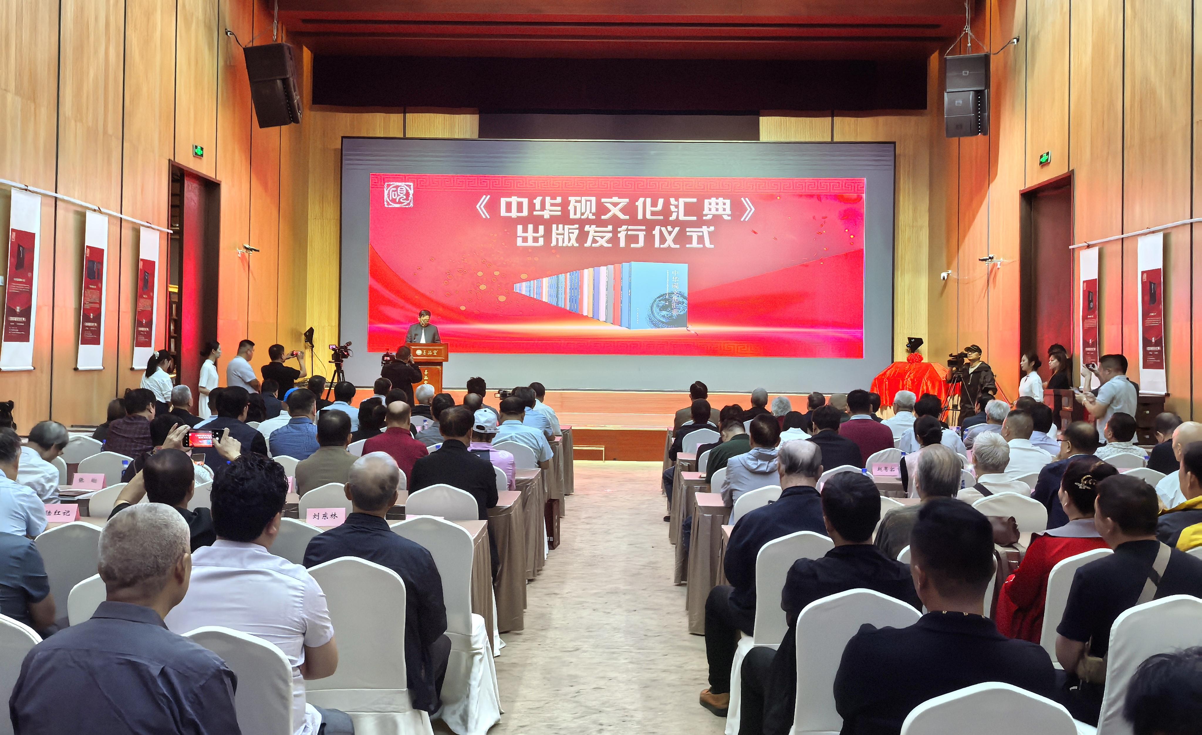 《中華硯文化匯典》分別由北京工藝美術(shù)出版社以及人民美術(shù)出版社出版,共分七卷共20本總計(jì)800萬字,時(shí)任中華炎黃文化研究會(huì)會(huì)長許嘉璐擔(dān)任編審委員會(huì)名譽(yù)主任并撰寫《總序》;劉紅軍、張希清為主任,王震中、劉慶柱等史學(xué)、文物、考古領(lǐng)域?qū)<覍W(xué)者組成編審委員會(huì)。首發(fā)儀式上,全體與會(huì)人員對(duì)百位硯文化專家、學(xué)者和志愿者持續(xù)十?dāng)?shù)年艱辛編典表達(dá)了各自的敬意,大家一致認(rèn)為:《中華硯文化匯典》既對(duì)硯文化璀璨的歷史進(jìn)行了梳理和總結(jié),又對(duì)當(dāng)代硯文化的現(xiàn)狀和研究成果作了較為充分記錄與展示,既有很高學(xué)術(shù)性,又具有向大眾普及的功能;它的出版發(fā)行既是對(duì)中華硯文化歷史的梳理總結(jié),也是當(dāng)代硯文化發(fā)展成果的集中展示和記錄;它對(duì)于宣傳和普及硯臺(tái)文化知識(shí),引領(lǐng)和指導(dǎo)硯臺(tái)文化研究,推動(dòng)中國硯文化事業(yè)整體發(fā)展都具有十分重大的意義。(盧敏、廖振華 文/于江攝 影)