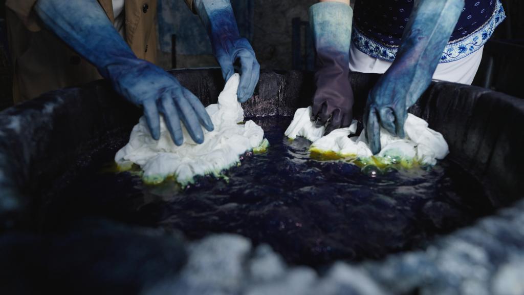 甲馬以刀為筆,鐫刻古老祈愿;扎染則以線為縛,在棉布上染出詩(shī)意。在匠志集的百工館里,陳列的一件件扎染制品吸引著眾多游客駐足。
