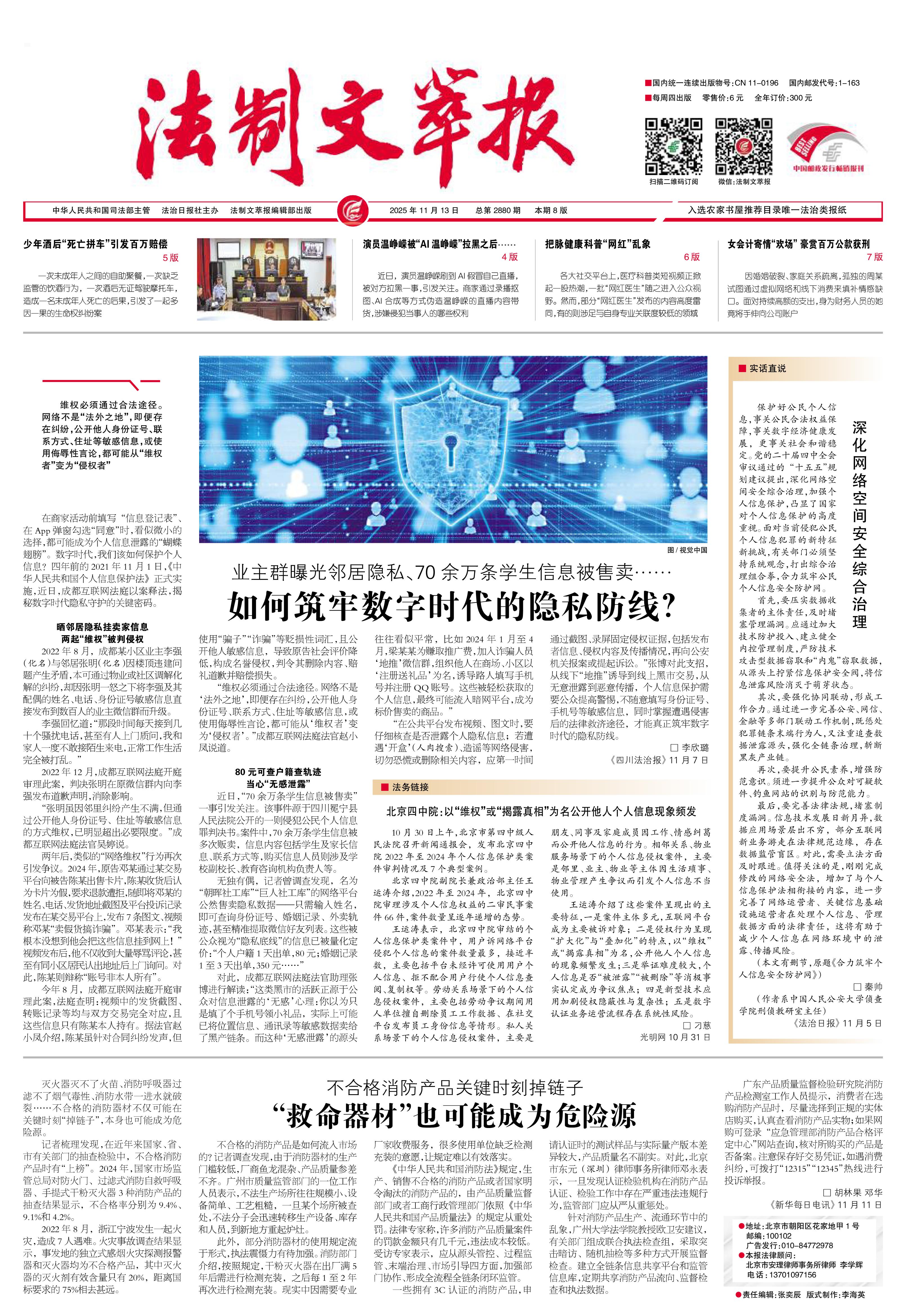 2025年11月13日《法制文萃報(bào)》總第2880期1版