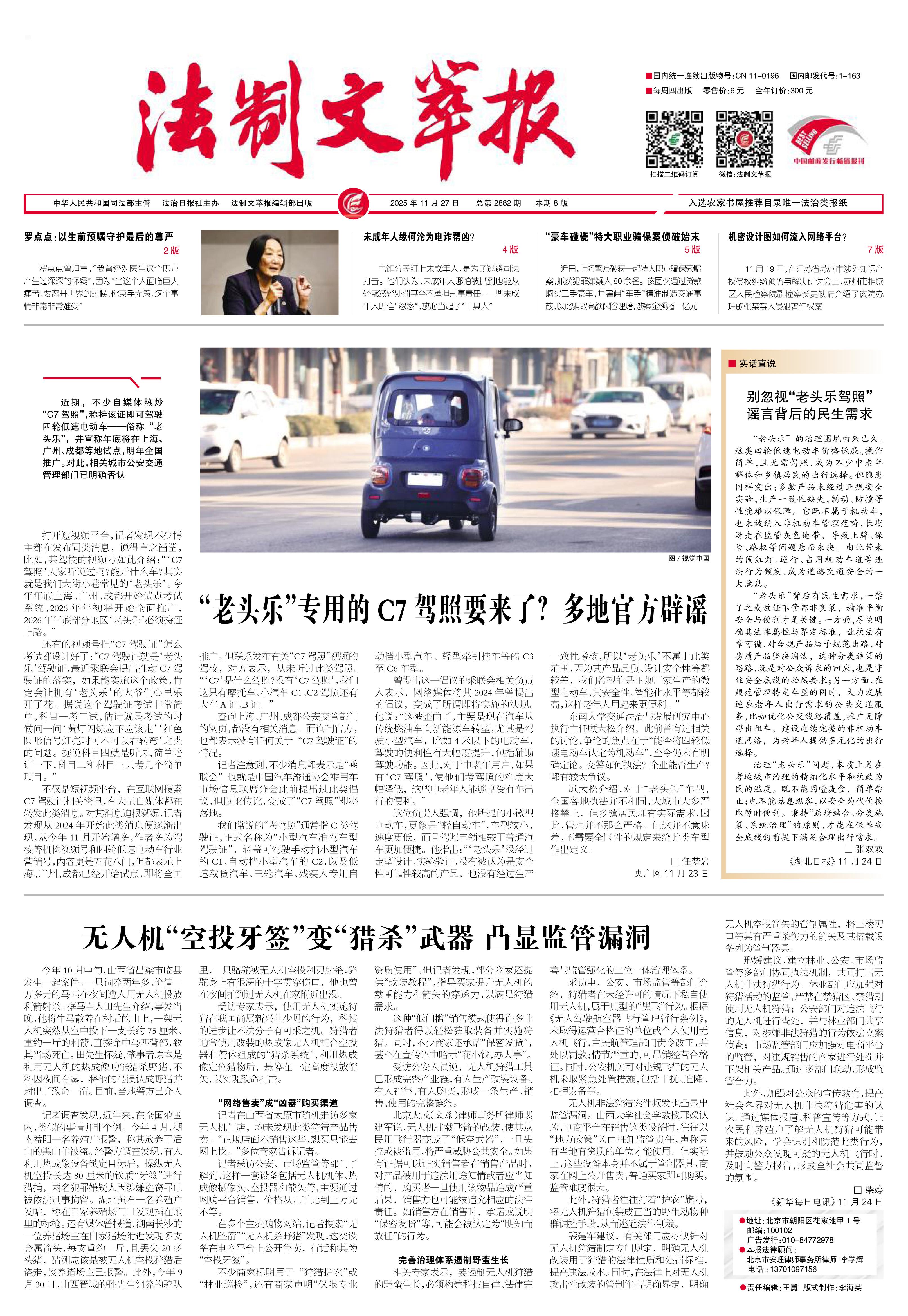 2025年11月27日《法制文萃報(bào)》總第2882期1版