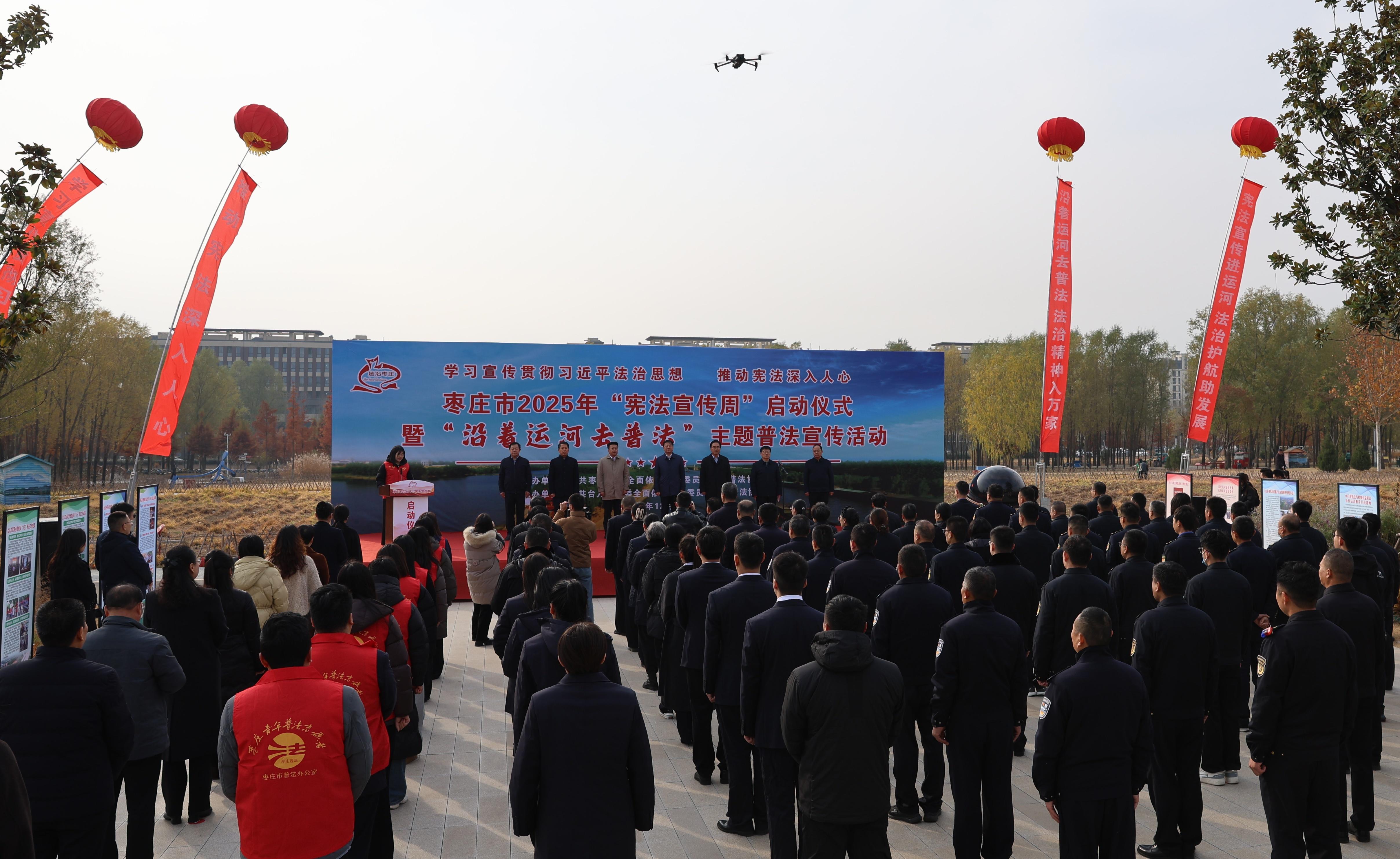 12月2日上午,在第12個(gè)國家憲法日即將到來之際,棗莊市2025年“憲法宣傳周”啟動(dòng)儀式暨“沿著運(yùn)河去普法”主題普法宣傳活動(dòng)在臺(tái)兒莊憲法廣場舉行。市委常委、宣傳部部長、統(tǒng)戰(zhàn)部部長陳永生,市人大常委會(huì)副主任孫恒,市司法局黨組書記、局長孫守春等出席活動(dòng),臺(tái)兒莊區(qū)委副書記、區(qū)長李軍致辭,市、區(qū)兩級(jí)人大代表和政協(xié)委員、“誰執(zhí)法誰普法”相關(guān)單位人員、普法志愿者及媒體代表共同參與。