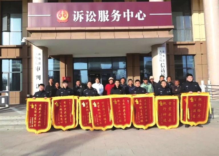 11月26日上午,13名農民工代表專程來到新蔡縣人民法院,將十五面錦旗鄭重交到該院執(zhí)行局強制執(zhí)行團隊成員手中。錦旗上的“雷霆出擊、執(zhí)行神速”“執(zhí)行給力、百姓滿意”燙金大字,無聲講述著一個司法為民、雷霆護“薪”的暖心故事。