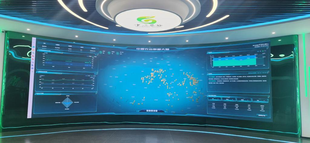 “中原農(nóng)谷數(shù)智大腦”的大屏幕上,顯示著各種數(shù)據(jù)。(受訪者供圖)