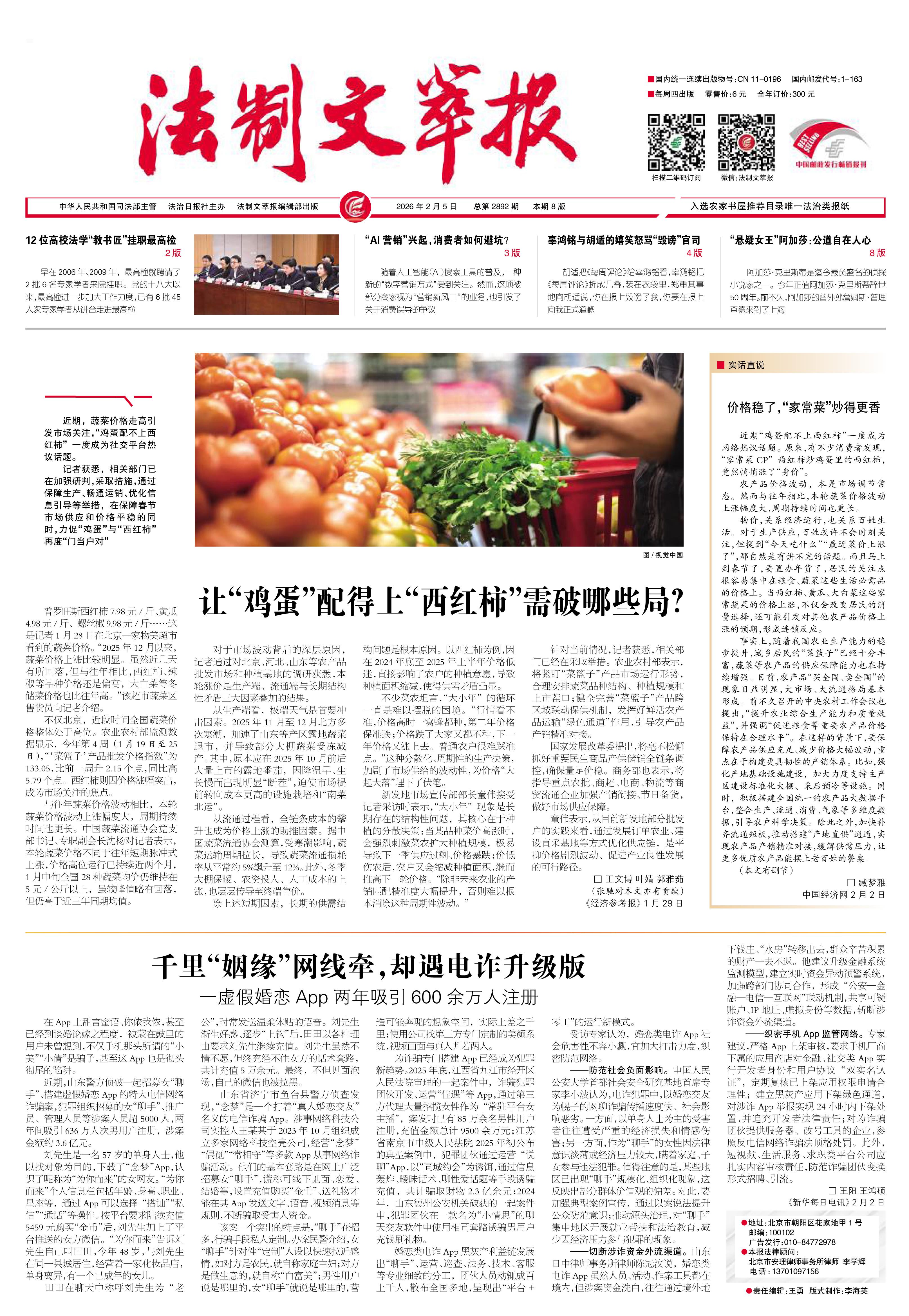 2026年2月5日《法制文萃報》總第2892期1版
