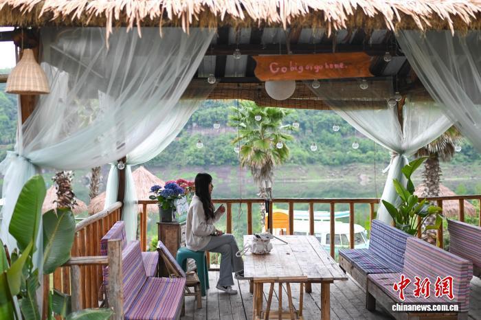 4月13日,走進重慶石柱橋頭鎮(zhèn)長沙村,藤子溝水庫波光粼粼,湖畔咖啡館飄香。遠處,一排排精品民宿立于湖光山色間,游客不時駐足,欣賞濕地公園美景。如今的長沙村,一棟棟老屋被點亮,一個個夢想被點燃,逐步形成了“藝術一條街”。