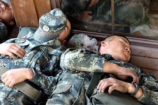 圖為2020年4月1日,武警官兵完成西昌百花深溝煙點撲救任務就地休息。李結義 攝