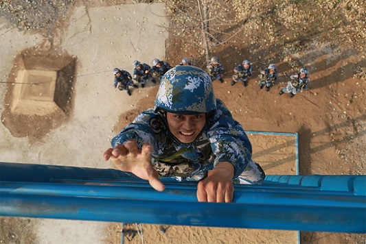 訓(xùn)練中,周曉超不斷給自己加壓加量。從攀登滑降到越障捕俘,從多能射擊到定位爆破,特種兵比武的10多個科目,周曉超要比別人多練幾遍,200多個日夜從未間斷。