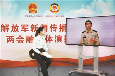 本報(bào)記者張笑語(yǔ)通過(guò)視頻連線方式采訪軍隊(duì)人大代表尹東。蘇鶴 攝