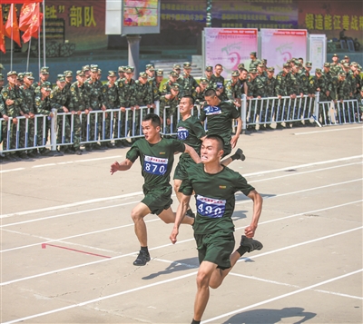 炎炎夏日,武警某部機動五支隊軍事體育運動會賽場硝煙四起,300多名官兵展開激烈角逐,掀起一場群眾性練兵熱潮。