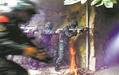 突擊組快速搜剿“暴恐分子”。