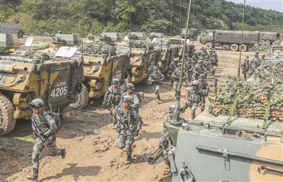 紅方偵察分隊抵近藍方前沿陣地,迅速傳回“敵情”。指揮所果斷下令,指揮炮兵分隊、電子對抗分隊、陸航火力和步兵突擊車攻擊群打出一套“組合拳”,對藍方陣地實施猛烈攻擊?;鹆Υ驌暨^后,藍方殘余力量依托有利地形負隅頑抗。抓住時機,紅方前沿突擊隊順勢展開強攻,在藍方火力封鎖區(qū)“撕”開一個突破口,成功占領(lǐng)陣地。