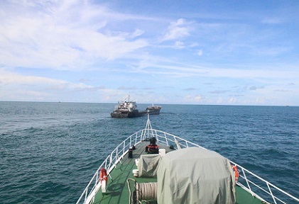 圖為海警艦艇在轄區(qū)海域巡邏時(shí)發(fā)現(xiàn)可疑船只。胡鵬濱 攝