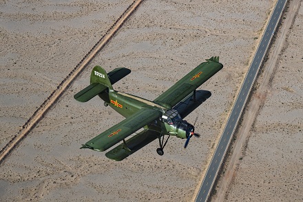 圖為官兵駕駛運(yùn)-5飛機(jī)飛越西北戈壁執(zhí)行飛播造林任務(wù)。劉暢 攝