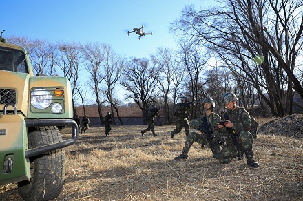 圖為官兵利用無人機(jī)對周邊地域展開偵查。陳浩 袁偉涵 攝