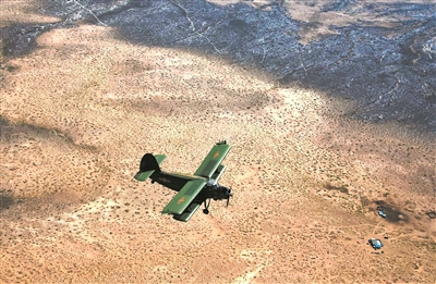 圖①:執(zhí)行飛播造林任務(wù)。