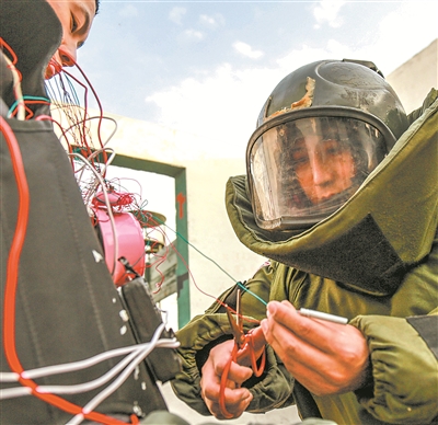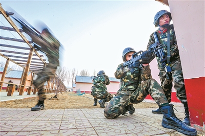演訓(xùn)場(chǎng)上,其他演練課目接連展開,砥礪官兵實(shí)戰(zhàn)能力。某大隊(duì)?wèi)?yīng)用激光模擬對(duì)抗系統(tǒng),組織紅藍(lán)對(duì)抗;排爆分隊(duì)設(shè)置復(fù)雜現(xiàn)場(chǎng)環(huán)境,排除“人質(zhì)”身上捆綁的“爆炸物”;偵察分隊(duì)實(shí)施抵近偵察,開展突入房屋訓(xùn)練……