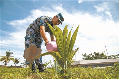 老炮依舊在,邊關(guān)展雄姿。今天,駐守在這個(gè)老哨位的,是被中央軍委授予“衛(wèi)國(guó)戍邊模范連”榮譽(yù)稱號(hào)的某邊防連。古炮臺(tái)一旁,花紅似火的木棉樹(shù)林,因在保衛(wèi)邊疆的戰(zhàn)斗中留下累累彈痕,獲得了“英雄林”的稱號(hào);山坡上,一片挺拔堅(jiān)韌的劍麻鋪展開(kāi)來(lái),寬厚的葉片刻寫(xiě)著官兵們創(chuàng)作的一首首詩(shī)歌,在“英雄花”的掩映下成為一道獨(dú)特的風(fēng)景——?jiǎng)β樵?shī)林。