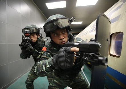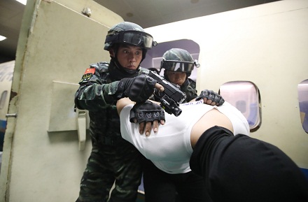 扮演歹徒的藍軍不按套路出牌,將飛機艙門用鐵絲鎖死,突擊隊員從艙外拉拽幾次無法突入。此時,身為現(xiàn)場指揮員的彭星果斷下令,改用突擊車掛鎖拖拽、強行破門,兵分三路突入艙內(nèi)。當槍聲突然從身后響起時,藍軍被打了個措手不及,6名“歹徒”全部被“擊斃”。