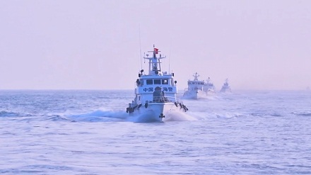 汕頭、揭陽、潮州海警局艦艇編隊(duì)單橫隊(duì)型航行。