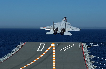 殲-15艦載戰(zhàn)斗機從山東艦起飛。李剛 攝