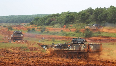 海軍陸戰(zhàn)隊步坦協(xié)同奪取縱深陣地。余文強 攝