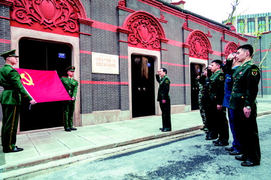 圖為上海軍事法院全體黨員在中共一大會址前重溫入黨誓詞。 倪宇浩 攝