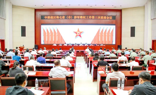 圖為中部戰(zhàn)區(qū)和七?。ㄊ校┱匍_涉軍維權(quán)工作第三次聯(lián)席會議現(xiàn)場。付超 攝
