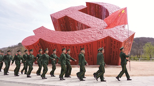 圖為武警陜西總隊延安支隊執(zhí)勤一中隊官兵開展主題黨日活動。黨鵬鑫 攝