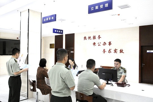 圖為法律援助律師在長沙軍事法院訴訟服務(wù)中心值班接待軍人軍屬。(長沙軍事法院供圖)