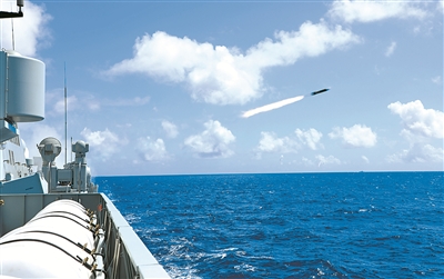 緊隨其后,各艦副炮系統(tǒng)對“敵”目標(biāo)實施補(bǔ)充打擊。海上“敵”情剛剛消除,空中威脅又不期而至。判別來襲目標(biāo)后,各艦立即發(fā)射干擾彈,同時進(jìn)行戰(zhàn)術(shù)機(jī)動,成功規(guī)避來襲導(dǎo)彈。