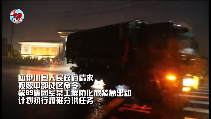 20日凌晨,河南省洛陽市伊川縣平等鄉(xiāng)馬回營村伊河攔水壩出現(xiàn)險情。按照中部戰(zhàn)區(qū)命令,第83集團軍某工程防化旅立即啟動預(yù)案,炸藥、雷管、救生舟艇等爆破和防洪器材緊急裝車,75名官兵、15臺裝備車輛在最短時間內(nèi)集結(jié)完畢,火速馳援洛陽市伊川縣任務(wù)區(qū),執(zhí)行爆破分洪任務(wù)。